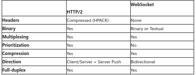 HTTP2能否替换WebSocket June 21, 2022 Question # HTTP2能否替换WebSocket? Answer # HTTP2与WebSocket的比较: HTTP2中的Server Push,可以把资源预先传递给客户端的缓存。数据接收的对象是浏览器,客户端并没有接口可以接收服务器端的通知。 另一种方案是Server-Send Events(SSE)。 Viewpoint # From # https://www.infoq.com/articles/websocket-and-http2-coexist/ Links #