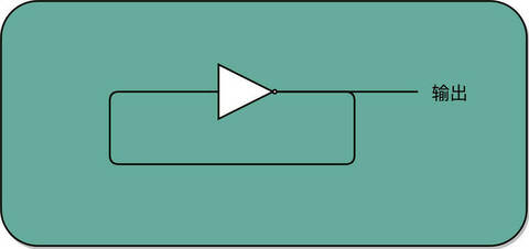 接下来,我们还会看到更多的反馈电路。上面这个反馈电路一般可以用下面这个示意图来表示,其实就是一个输出结果接回输入的反相器(Inverter),也就是我们之前讲过的非门。