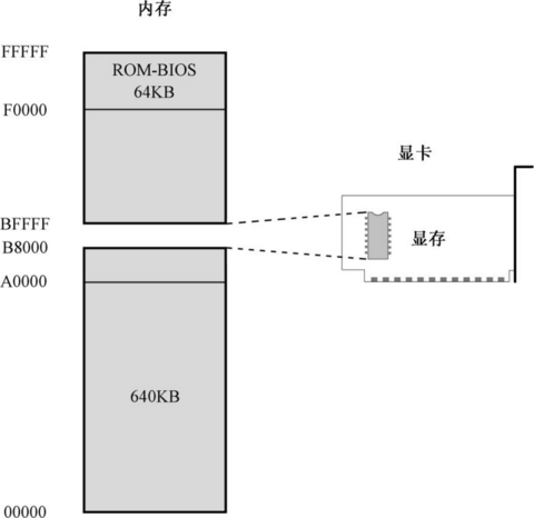 0xB8000~0xBFFFF (共320KB)这段物理地址空间就是留给显卡的,用来显示文本。如果显卡出了毛病,计算机就无法通过加电自检过程,计算机是无法启动的,更不要说加载并执行主引导扇区的内容了。