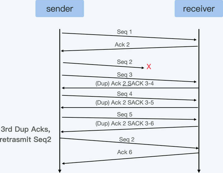 有了 SACK,对于发送端来说,在收到 SACK 之后就已经知道接收端收到了哪些数据,没有收到哪些数据。