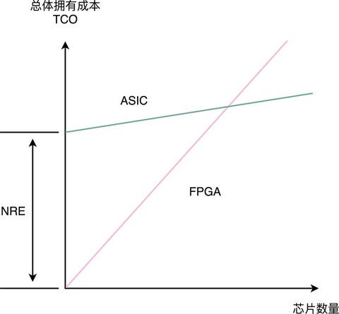 实际上,到底使用 ASIC 这样的专用芯片,还是采用 FPGA 这样可编程的通用硬件,核心的决策因素还是成本。不过这个成本,不只是单个芯片的生产制造成本,还要考虑总体拥有成本(Total Cost of Ownership),也就是说,除了生产成本之外,我们要把研发成本也算进去。如果我们只制造了一片芯片,那么成本就是“这枚芯片的成本 + 为了这枚芯片建的生产线的成本 + 芯片的研发成本”,而不只是“芯片的原材料沙子的成本 + 生产的电费”。