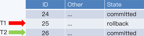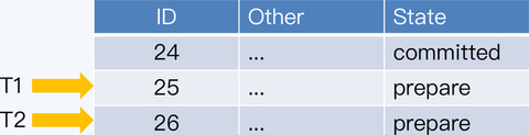 两个事务 T1 和 T2 都要在同一张表中插入记录,T1 先执行,得到的主键是 25,而 T2 后执行,得到是 26。
