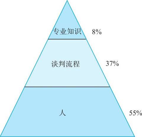 大部分人认为谈判的关键是具备专业知识:本人是金融专家,本人是医生,本人是环保律师,本人是能源专家,本人是机械师等。但是,研究表明,在促使谈判双方达成协议的关键要素当中,专业知识所起的作用仅占8%,人在其中所起的作用超过50%,即双方是否互有好感、是否互相信任、是否愿意倾听彼此的要求。谈判流程所起的作用大约占37%。