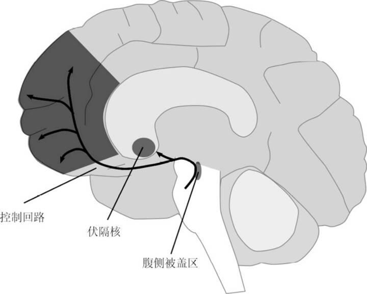 经过中脑边缘回路的多巴胺会产生冲动,我们称该回路为多巴胺欲望回路。计算和规划(控制各种情况的手段)来自中脑皮层回路,我们称之为多巴胺控制回路。为什么称之为控制回路?因为它的目的是管理欲望多巴胺不可控的冲动,将这种原始能量引向对我们有利的终点。此外,通过使用抽象的概念和前瞻性的策略,它使我们能够控制周围的世界,并支配我们的环境。