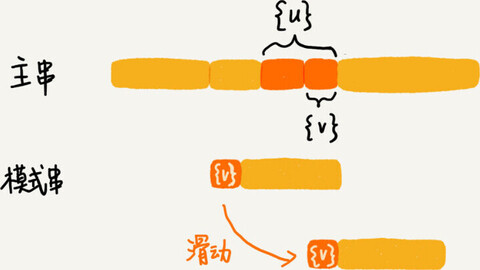 拿它在模式串中查找,如果找到了另一个跟{u}相匹配的子串{u*},那就将模式串滑动到子串{u*}与主串中{u}对齐的位置。