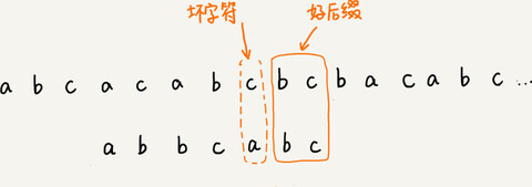 把已经匹配的 bc 叫作好后缀,记作{u}。