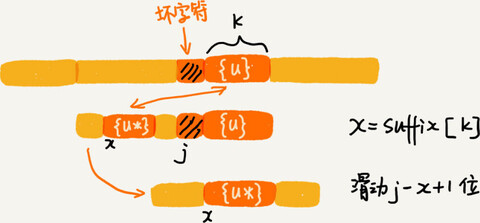 好后缀的后缀子串 b[r, m-1](其中,r 取值从 j+2 到 m-1)的长度 k=m-r,如果 prefix[k]等于 true,表示长度为 k 的后缀子串,有可匹配的前缀子串,这样可以把模式串后移 r 位。