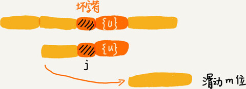 // j表示坏字符对应的模式串中的字符下标; m表示模式串长度