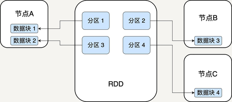 RDD可看作是分区(Partition)组成的数组。每个分区指向一个存放在内存或者硬盘中的数据块(Block),而这些数据块是独立的,它们可以被存放在系统中的不同节点。