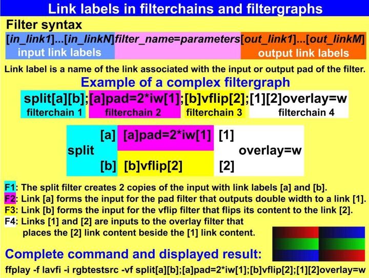 In the filtergraphs can be used link labels that represent the output of a selected filterchain and can be used anywhere in the following filtergraphs. For instance we want to compare the input video with an output denoised by a hqdn3d filter. Without the filtergraphs we must use at least 2 commands, for example: