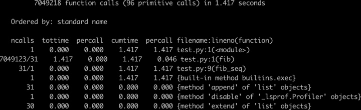 - tottime percall,就是上述两者相除的结果,也就是tottime / ncalls;