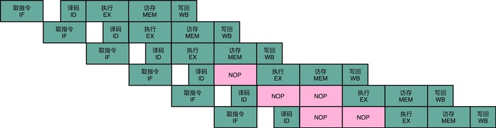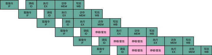这个插入的指令,就好像一个水管(Pipeline)里面,进了一个空的气泡。在水流经过的时候,没有传送水到下一个步骤,而是给了一个什么都没有的空气泡。这也是为什么,我们的流水线停顿,又被叫作流水线冒泡(Pipeline Bubble)的原因。