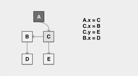 在这张图表现的 GC 标记过程中,应用动态地修改了 A 和 C 的指针,让 A 对象的内部指针指向了 B,C 的内部指针指向了 D。如果标记过程垃圾收集器无法感知到这种变化,最终 B 对象在标记完成后是白色,会被错误地认作内存垃圾被回收。