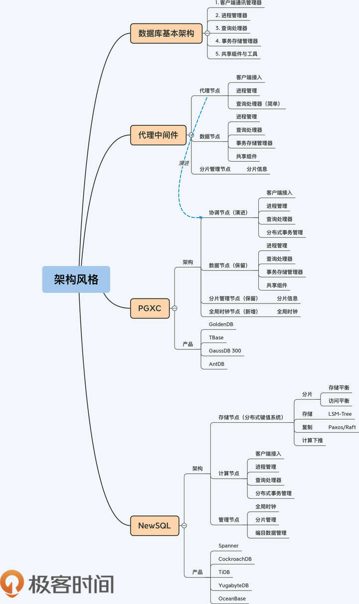 分布式数据库架构风格 September 19, 2022 Content # 下图简单介绍了 PGXC 和 NewSQL 两种架构。如果你想更彻底、更全面地了解数据库架构,我建议你仔细研读“Architecture of a Database System”和另一本非常值得阅读的经典教材《数据库系统实现》。 Viewpoints # From # 04 | 架构风格:NewSQL和PGXC到底有啥不一样? Links #