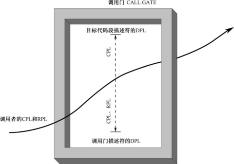 调用门描述符中的DPL 和目标代码段描述符的DPL 用于决定哪些特权级的程序可以访问此门。具体的规则是必须同时符合以下两个条件才行: