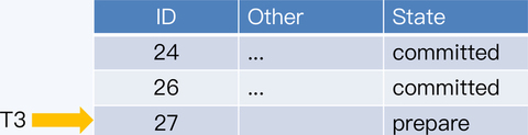 两个事务 T1 和 T2 都要在同一张表中插入记录,T1 先执行,得到的主键是 25,而 T2 后执行,得到是 26。