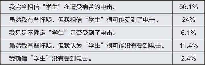 我说我不知道到底发生了什么,但我有我的怀疑。我想:“如果我的怀疑是正确的,那么他(‘学生’)就是与他们串通好的。肯定是这样的。我根本就没有发出电击,但他却不时地叫喊。”
