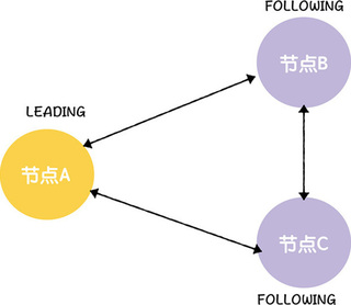 最后,因为此时节点 B、C 提议的领导者(节点 C)赢得大多数选票了(2 张选票),那么,节点 B、C 将根据投票结果,变更节点状态,并退出选举。比如,因为当选的领导者是节点 C,那么节点 B 将变更状态为 FOLLOWING,并退出选举,而节点 C 将变更状态为 LEADING,并退出选举。