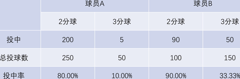 看来,无论 2 分球还是 3 分球,B都比A的投中率要高。看上去也是 B 比 A 厉害,对吧?