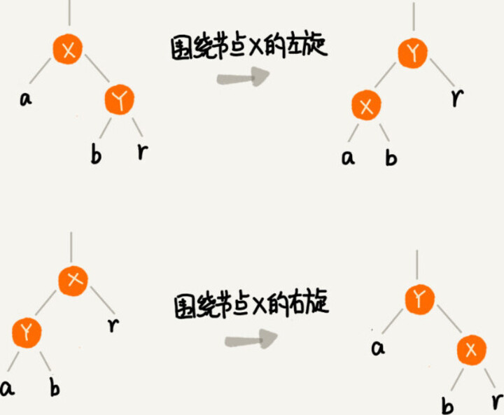 左旋(rotate left)全称是围绕某个节点的左旋。右旋(rotate right)全称是围绕某个节点的右旋。