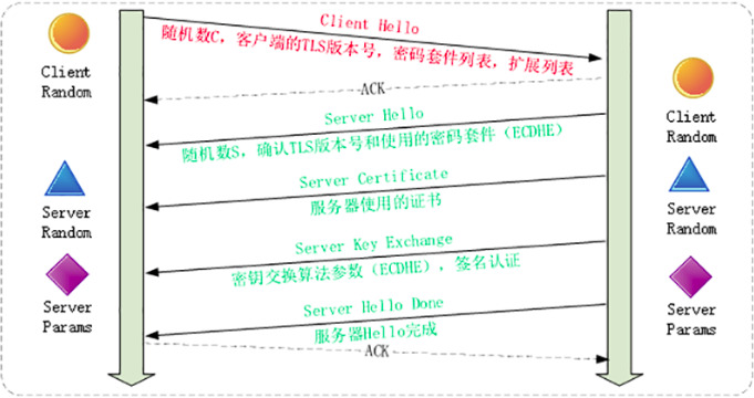 这样第一个消息往返就结束了(两个 TCP 包),结果是客户端和服务器通过明文共享了三个信息:Client Random、Server Random 和 Server Params。