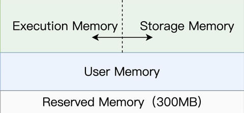 其中,Reserved Memory 固定为 300MB,不受开发者控制,它是 Spark 预留的、用来存储各种 Spark 内部对象的内存区域;User Memory 用于存储开发者自定义的数据结构,例如 RDD 算子中引用的数组、列表、映射等等。