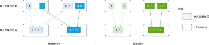 为什么 repartition 会引入 Shuffle,而 coalesce 不会呢?原因在于,二者的工作原理有着本质的不同。