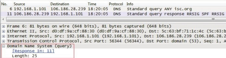 下面是在执行“dig ANY isc.org”(解析isc.org的所有信息)时抓的包,可见