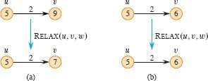 The process of relaxing an edge (u,v) consists of testing whether going through vertex u improves the shortest path to vertex v found so far and, if so, updating v.d and v.π.