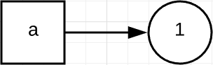 这里首先将 1 赋值于 a,即 a 指向了 1 这个对象,如下面的流程图所示: