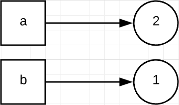 接着 b = a 则表示,让变量 b 也同时指向 1 这个对象。这里要注意,Python 里的对象可以被多个变量所指向或引用。